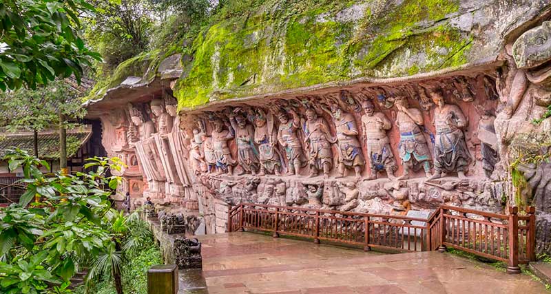 Экскурсия к наскальным рельефам Дацзу — комплексу древних наскальных рельефов VII—X веков в чунцинском районе Дацзу. Состоит из 75 охраняемых участков; самые ранние датируются 650 годом н.э. и относятся к периоду династии Тан. Обед.