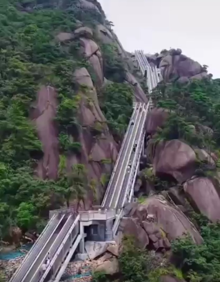 В Китае вновь удивили — в туристическом районе на горе Linshan Scenic Area (провинция Jiangxi Province) появился эскалатор длиной 1 236 метров, который доставляет посетителей на вершину всего за ~10 минут вместо прежнего примерно двухчасового подъёма по ступенькам